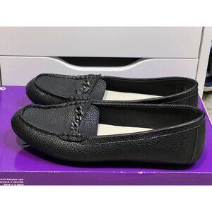 Anne Klein Women Black Leather Chessy Slip On Casual Loafer Size 8 Shoes No Box