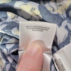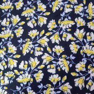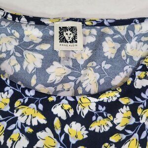 Anne Klein Women Dark Floral Navy/Yellow Short Sleeve Lightweight Top Size L
