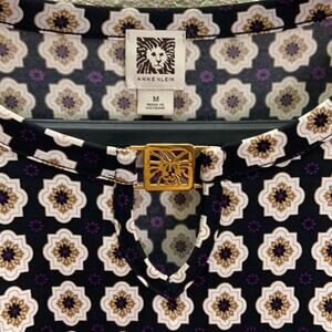 Anne Klein women medallion print keyhole neck with an emblem blouse in excellent condition Size M. Perfect for office or night out!