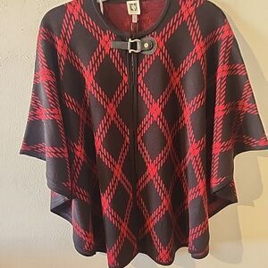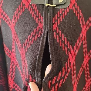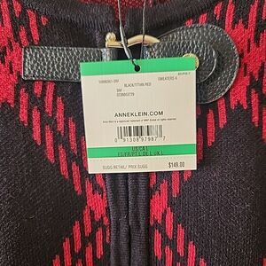 Anne Klein Women Red Black Plaid Sweater Cardigan Shawl Checkered Large New NWT