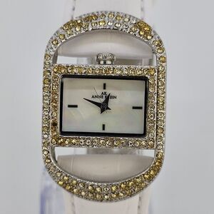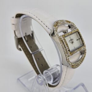 Anne Klein Women Watch 25MM White Dial New White Leather Band Straps New Battery
