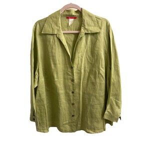 Anne Klein Women`s 100% Linen Button-up Tunic Top Green 24W Relaxed Boho