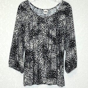Anne Klein Women's 1X Black Gray 3/4 Sleeve Blouse