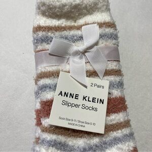 Anne Klein Women's 2 Pairs Socks Size 9-11 Gray Ivory Beige Clay Fuzzy Gift NEW