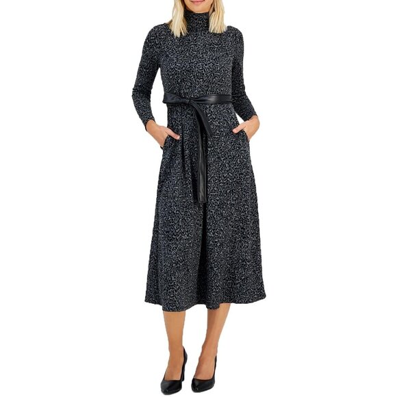Anne Klein Womens Animal Print Maxi Dress Gray Size S MSRP $139