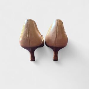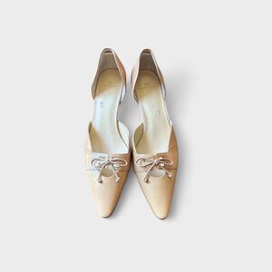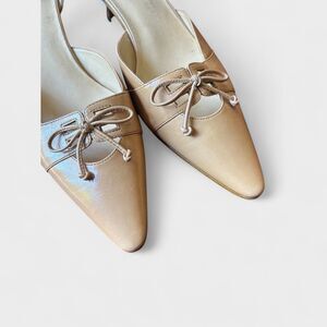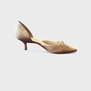 Anne Klein Women’s Beige Tan Leather Kitten Heel Pumps Size 8.5M Y2K Bow Pointed