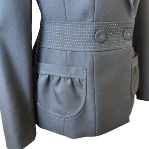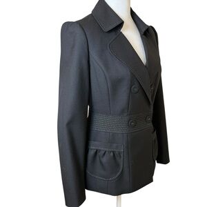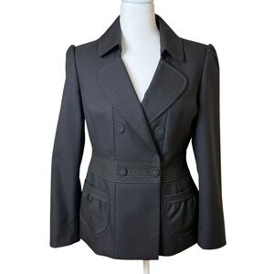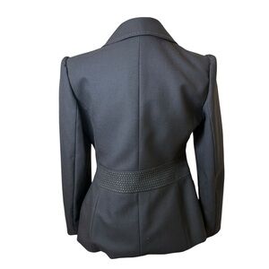 •Style Profile: Anne Klein Womens Black Blazer Size 6 Gold Thread Wool Blend Fitted Career Work