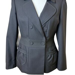 Anne Klein Womens Black Blazer Size 6 Gold Thread Wool Blend Fitted Career Work