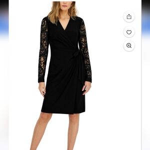 Anne Klein Womens Black Knit Lace Sleeves Midi Cocktail and Party Dress EUC