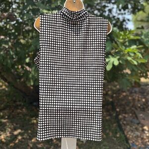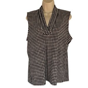 Anne Klein Women's Black/White Sleeveless Pearly Polka Dot Triple Pleat Top Sz L