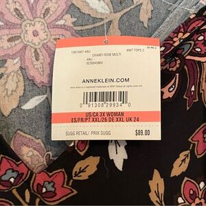 Anne Klein Women’s Blouse Size 3X Black With Flowers Grannycore Boho Chianti Rose top grannycore bohemian boho cottonagecore lightweight workwear business casual party new with tags