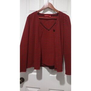 Anne Klein Women's Cardigan & Tank Set Red Black Stripe Size XL Workwear Classy