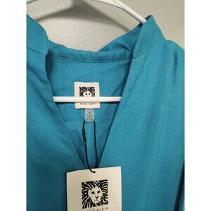 Anne Klein Women's Cotton Midi Sun Dress with Sash Calypso Blue New