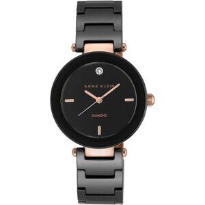Anne Klein Women's Diamond Dial Rose Gold-Tone Black Ceramic Bracelet Watch