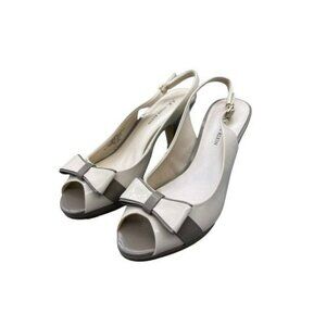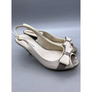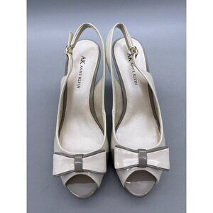 Anne Klein Womens Eloise Beige Bow Top Patent Peep Toe Slingback Heels US Size 7.5 M