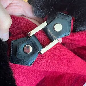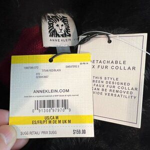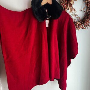 Anne Klein Women's Faux Fur Collar Ponco Sz MEDIUM in Titian Red/Anne Black