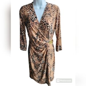 Anne Klein Women’s Faux Wrap Dress Animal Print Brown Black Size 4