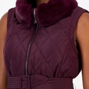 Anne Klein Women's Faux-Fur Collar Quilted Vest - Deep Plum - (very soft) 3x