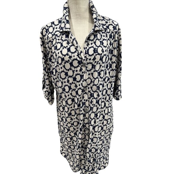 Anne Klein Womens Floral Print Button Down Shirt XL