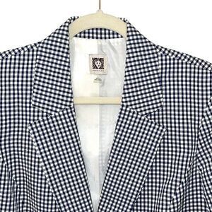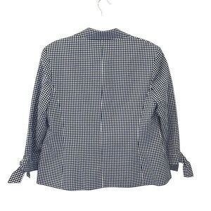 Anne Klein Womens Gingham Single Breasted Tie Cuffs Blazer Jacket Navy White Large