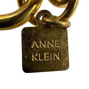 The Anne Klein Women's Gold Tone Metal Link Necklace is a striking vintage-style accessory. The necklace features alternating polished and textured gold-tone links, providing eye-catching contrast and depth. A hallmark Anne Klein charm dangles near the clasp, adding a branded touch of elegance. The piece is stylish for statement jewelry and is crafted from durable metal with a classic lobster clasp closure, ensuring secure wear. This is a robustly designed accessory ideal for timeless wear with a bold, luxurious appeal.