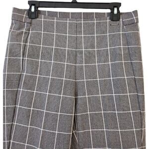 Anne Klein Women's Gray White Plaid Straight Leg Pull On Ankle Trousers Pants M