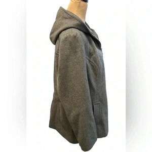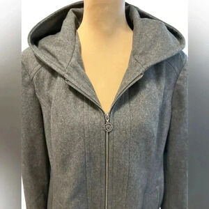 Anne Klein Women’s Gray Wool Blend Hooded Jacket Full Zip & Satin Lined Size XL