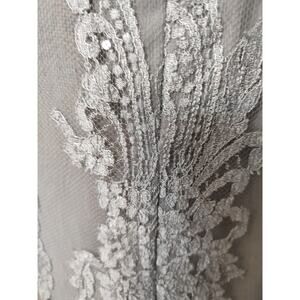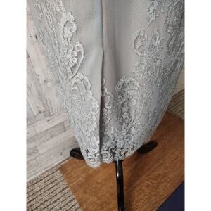 Anne Klein Women's Grey Lace Lined Short Top Long Skirt Sequins Size 8 Formal