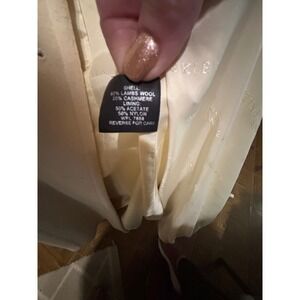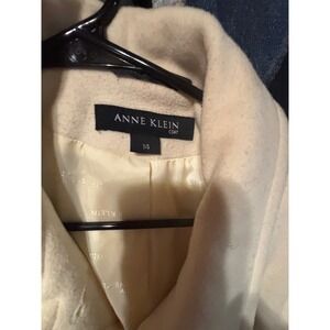 Keywords: Anne Klein coat, womens coat, ivory coat, winter coat, size 14, classic outerwear, collared coat, button front coat, cream coat, wool coat, dress coat, career wear, formal coat