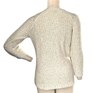 Anne Klein Womens Ivory Pullover Crewneck Cozy Sweater Sz M Gold Sequins #242i