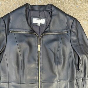 Anne Klein Women's Mid-length Full Zipper Genuine Soft Leather Coat Black Small
