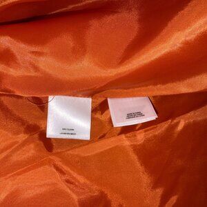 This Anne Klein blazer, featuring a vibrant orange hue, is tailored for the modern professional woman. With a medium fit, it offers both comfort and style. Ideal for making a bold statement in the office, the jacket is crafted with a blend of quality materials ensuring durability.