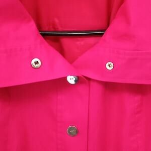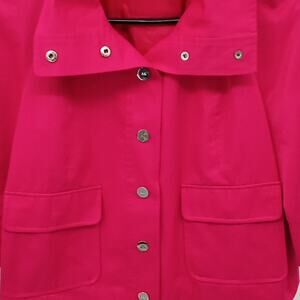 This Is Such A Great Shorter Length Loose Fit Raincoat Type Of Jacket By Ann Klein! 2 Big Front Pockets, Adjustable Collar To A Turtleneck Style, Or Leave It Down For A Relaxed Style. Great Deep Rose, Magenta Raspberry Color! Spring Must Have! Snap Silver Metal Ak Logo Buttons, Back Center Pleat, Wide 34 Length Sleeves, And Smooth Texture!