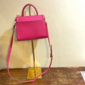 Anne Klein Women's Pink Top Handle Crossbody Satchel Bag with Gold Accents