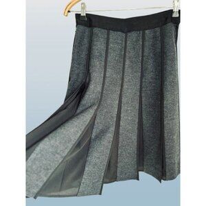 Anne Klein Womens Pleated A-Line Midi Skirt Black & Gray Wool-Blend Size Small