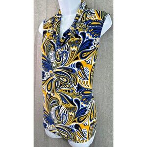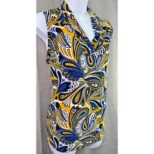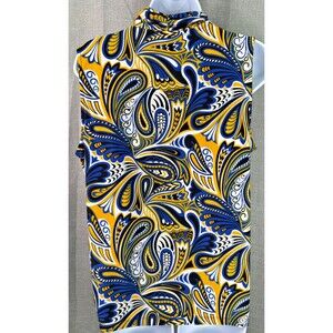 Anne Klein Women's Plus SIze 1X Sleeveless Blouse Career Top Yellow Blue Paisley