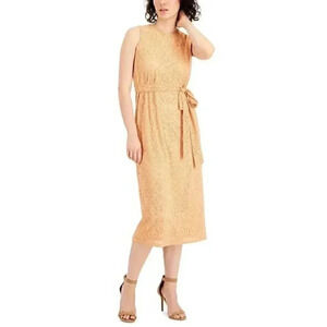 Anne Klein Women's Size 12 Crochet Belted Midi Dress In Warm Sand NWT $119