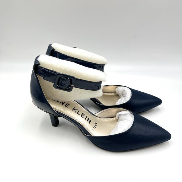 Anne Klein women's Fabulist navy blue d'Orsay ankle strap heels.