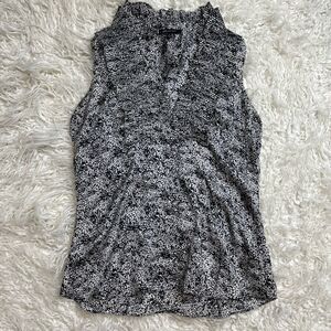 Anne Klein Womens Size 6 Sleeveless Blouse Ruffle Neck Line Black & White