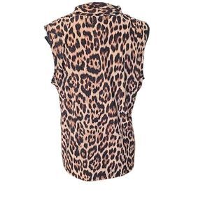 Anne Klein Women's Size Large Brown Black Leopard Print Sleeveless Blouse