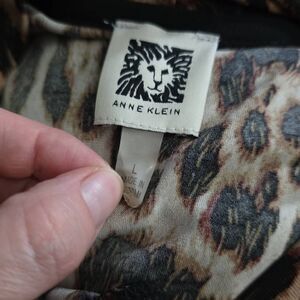 Unleash your wild side with this chic Anne Klein sleeveless blouse! This size large top features a timeless and trendy brown and black leopard print, making it an effortless statement piece for your work or weekend wardrobe.