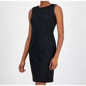 Anne Klein Women's Sleeveless Boucle Sheath Dress Formal Chic Causal Black 10