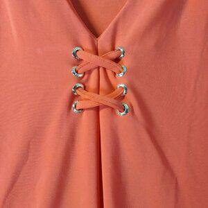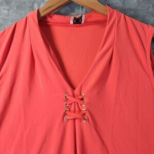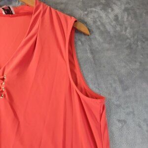 Anne Klein Womens Sleeveless Lace Up V Neck Top L Coral Stretchy Career Workwear