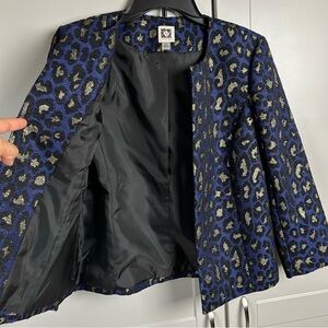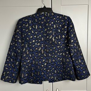 Anne Klein Women's Small Blazer Blue Gold Black Leopard Print Office Business