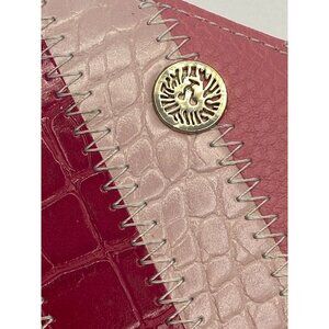 Anne Klein Womens Striped Wallet With Faux Leather Croc & Pebble Textures Pink M