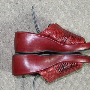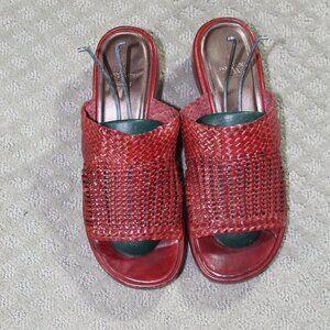Anne Klein Women's Sz 7M Red Woven Slide On Platform Sandals