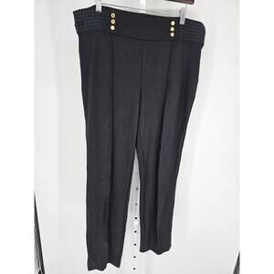 Anne Klein Womens Sz L Straight Leg Pull On Dress Pants Black Gold Buttons