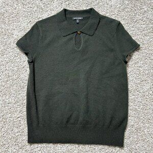 Anne Klein Women's Sz Medium Short Sleeve Knit Top Collar Dark Green