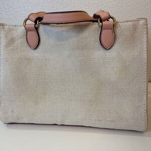 Anne Klein Women’s Tan White Canvas With Light Gold Sparkles Hand Bag. Good condition. Some light wear on exterior.