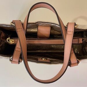 Anne Klein Women’s Tan White Canvas With Light Gold Sparkles Hand Bag